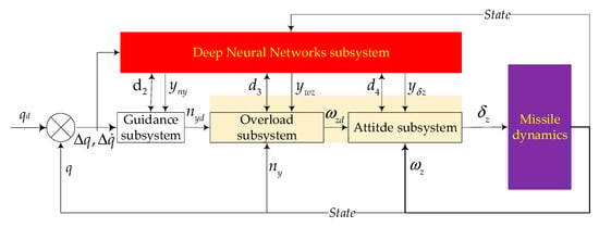 According to the control structure in Figure 4, when introducing the DNN into guidance subsystem, can be written as . Combining Equations (14), (15), (17) and (24) and differentiating Equation (23), we can design the virtual command of the guidance subsystem with the deep neural network: