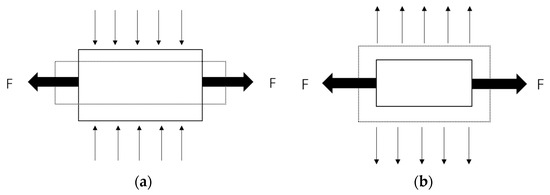 Different deformation characteristics of positive and negative Poisson’s ratio structures. (a) Positive Poisson’s Ratio. (b) Negative Poisson’s Ratio.