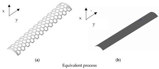 2.1. Equivalent Parameters of the Negative Poisson’s Ratio Honeycomb Structure
