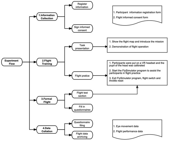 The formal experiment was made up of four steps, which included “Information collection”, “Flight training”, “Formal flight”, and “Data collation”. The experiment flowchart is shown in Figure 2.