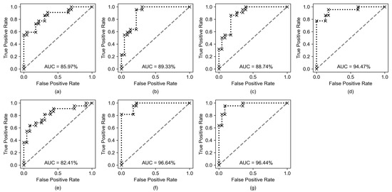 Cross validation is a standard method to evaluate model performance in machine learning [47]. It divides the training data into several subsets and uses one subset each time to verify the model obtained from the training of other remaining subsets to reduce the error caused by unreasonable partitioning of the training data. When the number of instances in a dataset or the number of a certain class is too small, it may be beneficial to use a technique called “leave-one-out” cross validation to obtain a more reliable estimate of the accuracy of a classification algorithm [48]. This is a particular condition of k-fold cross validation, where only one instance is left out during each iteration. This allows for using all the data in the estimation process while still providing a way to measure the algorithm’s performance on unseen data [49].