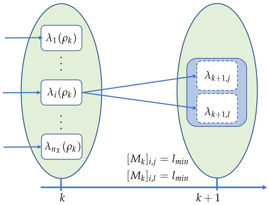 where denotes the eigenvalue function and denotes the corresponding eigenvector function. The method to generate for Equation (3) using the above Equation (6) is called modal decomposition. Note that eigenvalues and eigenvectors vary with the scheduling parameter . The eigenvalue trajectories and corresponding eigenvectors are proved to have analytic expressions if multiplicities of the eigenvalues are 1 in the whole parameter range [33]. If multiplicities are greater than 1, it has been proven that analytic expressions also exist when additional conditions are satisfied [34]. The inverse of is written as . Then, the matrix-valued function can be expressed as