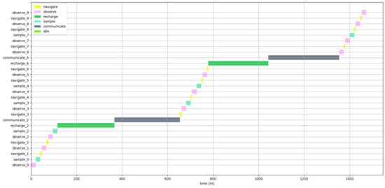 The plan can be directly interfaced in a simulated or analogue platform as soon as it is generated. The authors used the Robot Operating System (ROS) to interface a similar plan with the IGLUNA rover in [], testing the overall feasibility of this approach.