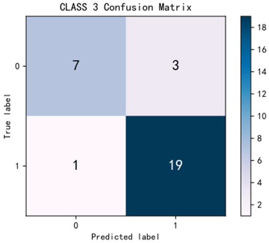 The partitioned test datasets were fed into the trained models for testing and validation, and the confusion matrices of the test results of the long landing pre-warning models for the three classes of pilot operation characteristics were derived, respectively, as depicted in Figure 4, Figure 5 and Figure 6.