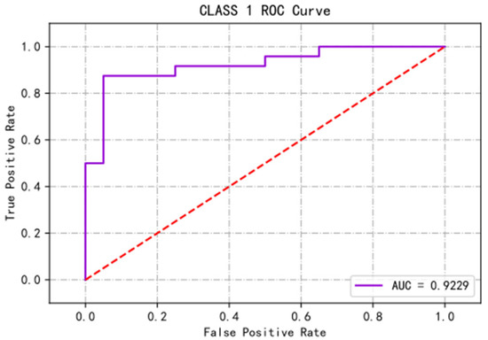 In addition, the ROC curves and AUC values corresponding to the test results of the three types of early warning models are shown in Figure 5, Figure 7, Figure 8 and Figure 9. The AUC values of the models are close to 1, which indicates that the pre-warning models of the three classes’ operation characteristics all have excellent pre-warning performance.