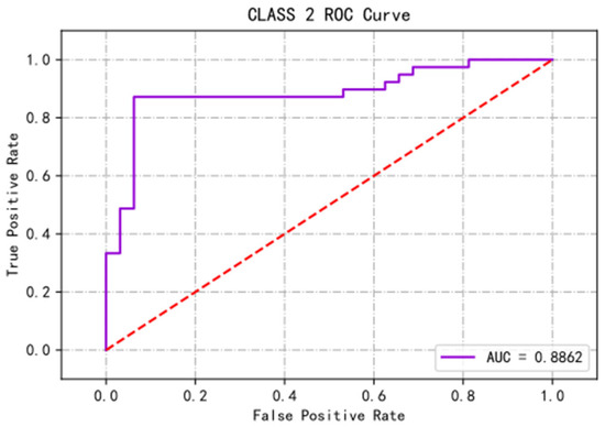 ROC curve of model testing for the Class 2 operation characteristics group.