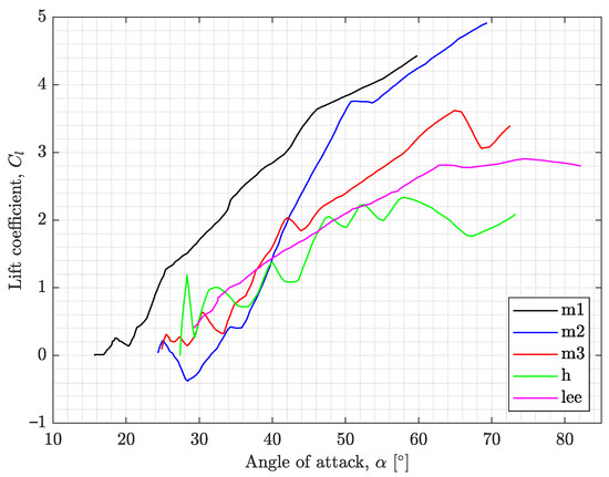 - Ford, C.P.; Babinsky, H. Lift and the leading-edge vortex. J. Fluid Mech. 2013, 720, 280–313. [Google Scholar] [CrossRef]