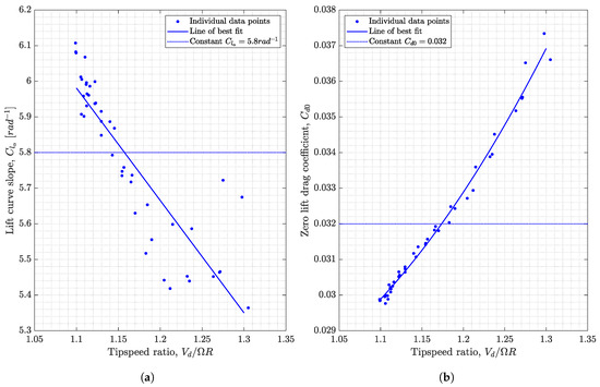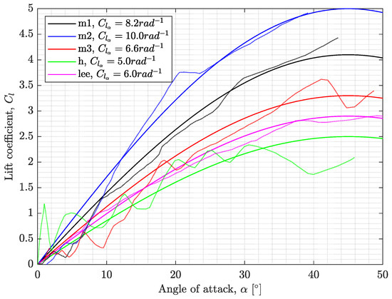 The Polhamus model expresses the lift coefficient for a three-dimensional finite wing. In order to use the Polhamus model within the BEM model, Equation (4) must be expressed in a 2D form as a sectional lift coefficient, . One can use a crude method to assume that the sectional lift coefficient is the same as the three-dimensional lift coefficient, giving: