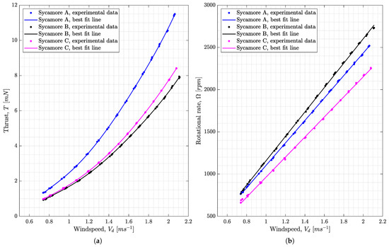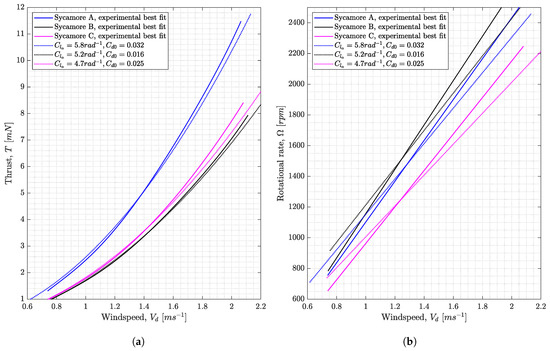 Therefore, in the present study, we try to assess the validity of representative sectional lift and drag functions in the prediction of both thrust and rotational speed over a range of vertical inflow conditions. Establishing the correct lift and drag expressions is very critical in the accurate prediction of samara performance, particularly since the samara rotational speed is greatly affected by the aerodynamic torque balance acting on it, which is in turn influenced by the generated lift and drag forces. The study also aims to establish comprehensive datasets for thrust and rotational speed measurements and to quantify the aerodynamic parameters, such as lift curve slope and zero-lift drag coefficient for different seeds at different wind conditions.