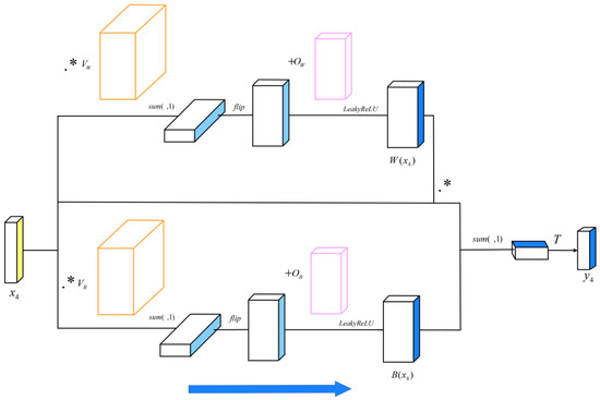 A graphic forward propagation of (Equation (17)) is shown in Figure 2. The expression of the variable-weights-biases layer is .