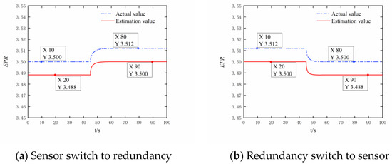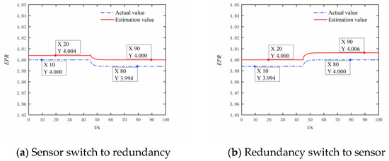 In hardware in the loop simulation experiment, low-pressure rotor speed () and engine pressure ratio () dual variable control is adopted. During closed-loop control circuit, the controlled signal is switched between the physical and the analytical redundancy estimated by the VWB Net. During closed-loop control circuit, the controlled signal is switched between the physical engine pressure ratio and the analytical redundancy engine pressure ratio estimated by VWB Net.