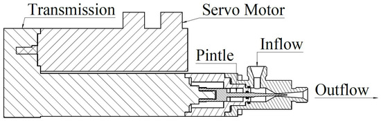 We used a variable-area cavitating venturi as the flow control valve due to its advantages of high linearity, fast response, and isolation from fluctuations in the downstream pressure. A schematic diagram of the variable-area cavitating venturi is shown in Figure 3.