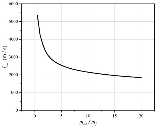 In Equation (9), Isp is the specific impulse and is the mass flow rate of fuel. The relationship between the specific impulse and the specific impulse of the oxidizer is as follows: