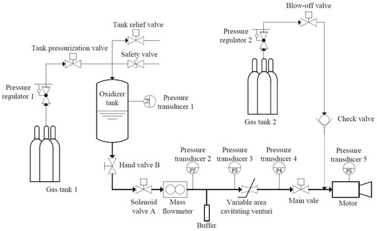 The object of control in this study is a laboratory-sized hybrid rocket motor and the control variable is the thrust of the motor. The measuring element for collecting actual thrust signals is an s-type compression force transducer. A variable-area cavitating venturi is used as the actuator, and a programmable logic controller (PLC) is the value of the set thrust-providing element.