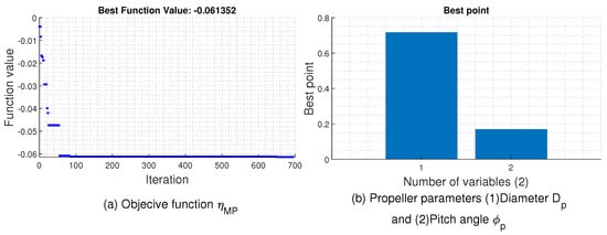 The optimization technique is based on the simulated annealing algorithm , which was introduced by inspiring the annealing procedure of the metalworking. In a general manner, the SA algorithm adopts an iterative movement according to the variable temperature parameter, which imitates the annealing transaction of the metals []. This algorithm is directly explored using the MATLAB global optimization toolbox. The efficiency of the pair motor/propeller is used as an objective function in this case. It is given by