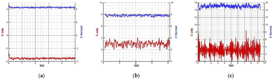 The Power Spectral Density (PSD) of the side and normal forces for the interval t = 2.1–6.1 s are shown in