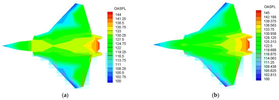 OASPL on aircraft surfaces: (a) Upper surface; (b) Lower surface.