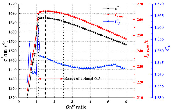 - According to the update of O/F, and , calculate the actual specific impulse by the method of interpolation;