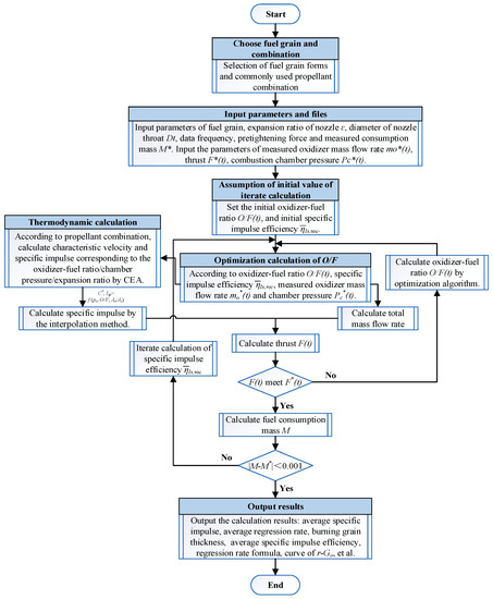 - Compare the calculated and measured firing test data of at every time-step. If the residual of is unqualified, return to step (3) and calculate the optimal oxidizer/fuel ratio O/F by the optimization algorithm until the residual of meets the requirement;
