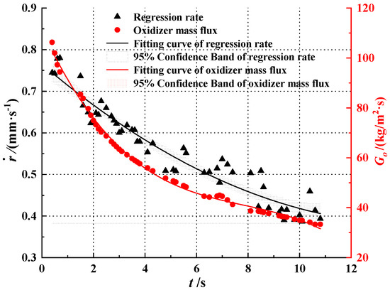- Fit the variation in the regression rate with the oxidizer mass flux by the least squares method and output the calculation results after reconstruction: average specific impulse, average regression rate, average specific impulse efficiency , the formula of the regression rate, the curve of , the accuracy of fitting and so on.