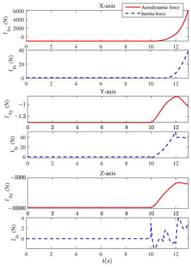 The simulation results indicate that the impact of inertial forces is relatively small during open-loop simulations under different flight conditions. However, the effects of inertial and gravitational moments are more substantial, and they have a more significant influence on the dynamic behavior of the aircraft.