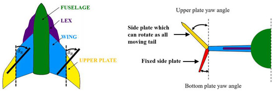 - Kwiek, A.; Figat, M. LEX and wing tip plates’ interaction on the Rocket Plane in tailless configuration. Aeronaut. J. 2016, 120, 255–270. [Google Scholar] [CrossRef]