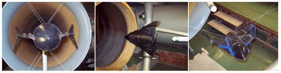 As mentioned, selected CFD results were verified in the wind tunnel test. The experimental tests campaign was conducted in the Warsaw University of Technology aerodynamics laboratory (Faculty of Power and Aeronautical Engineering). A closed-circuit subsonic wind tunnel with a 1.16m diameter open measure test section was used. The dedicated model of the rocket plane was built in 1:15 scale. The model was equipped with the control surfaces that were deflected during the tests. The model was attached in the wind tunnel using wires which passed through muffs in the fuselage (Figure 6). The wind tunnel is equipped with the Witoszyński type balance [37] with a digital data acquisition system.