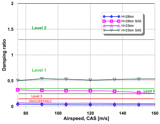 - For altitudes between 23 to 28 km and a supersonic speed regime, the short period damping is insufficient and application of the Stability Augmentation System (SAS) is recommended. A proper selection of gain resulted in shifting the damping to the Level 1 (according to MIL specification).