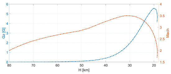 - The maximum Mach number and maximum G-load occur at different altitudes. The highest values of the Ma were noticed at between 30–35 km, while the highest values of G-load were recorded around 20 km.
