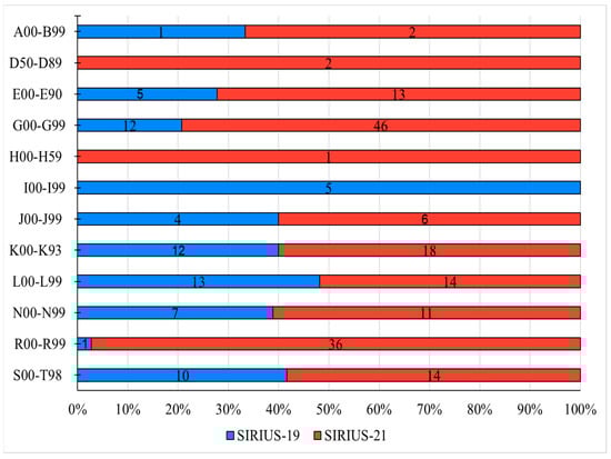 The clinical cases were analyzed on the basis of syndromes and conditionally united into diagnostic groups according to the ICD-10 (Figure 3).