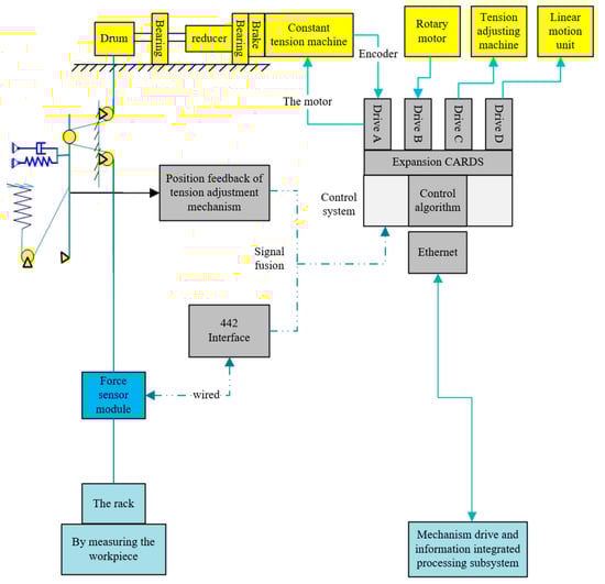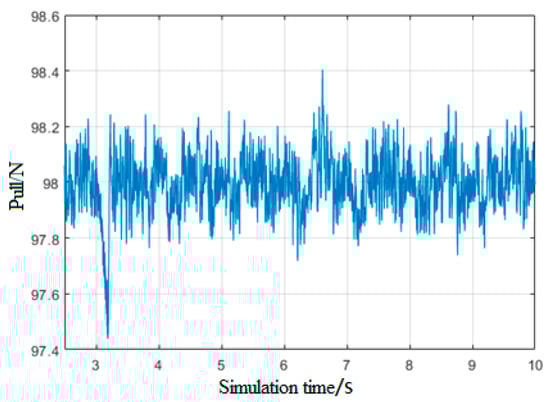 The tension of the sling is detected by the force sensor in real-time and fed back to the control system to realize the closed-loop control of the tension, which can compensate the low-frequency interference of the system. However, it is difficult to use the control system to suppress the high-frequency change part of the tension caused by the movement of the turntable and the high-frequency change part of the friction caused by the motor commutation process. Therefore, an appropriate mechanical buffer and compensation mechanism must be designed to suppress it, providing the control system with the necessary response time and space.