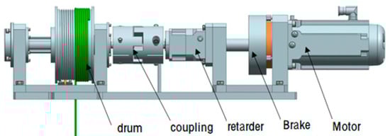 The motor drive mechanism is mainly composed of a motor, brake, reducer, coupling, drum, and sling. The structure is shown in Figure 3.