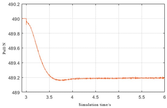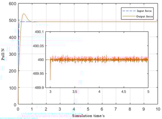 According to Equations (6) and (13), when the weight of the object is 50 kg we have T = 490 N, K 1 = 2.506   N / m m .