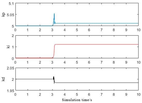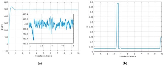 Figure 30. RBF-PID control response curve after introducing torque fluctuation. (a) Output response curve; (b) Parameter value of integration term.