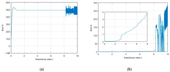 Before the buffer mechanism works, it is necessary to adjust the position of point d according to the mass of the load so that the pendulum rod is initially in a horizontal state. Assuming that the tension spring’s original length plus the sling’s length is l0, when the low-gravity simulation system is working, the shape variable of the tension spring is | c b | + | b d | l 0 . According to Hooke’s Law, the tension on the tension spring is
