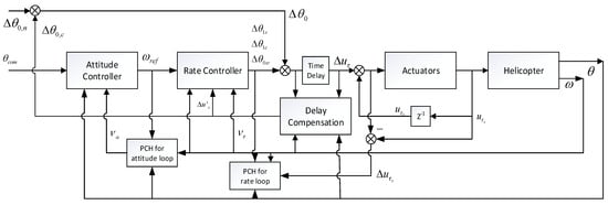 Besides the constraint of time delay, actuator saturation is very common and a more general problem in the helicopter due to the limitation of actuators in terms of the position and rate saturation. Therefore, many recent works have been carried out on actuator saturation nonlinearity as it causes the windup phenomenon [30,31,32,33,34,35]. Based on nonlinear partial differential inequalities, an optimal saturation compensator was developed in [32]. In [11], the pseudo-control hedging method is proposed to offset the virtual control input when the actuators are saturated. Ref. [33] further expanded the PCH theory and [34] applied the method to the development of the Boeing 747 flight control system.