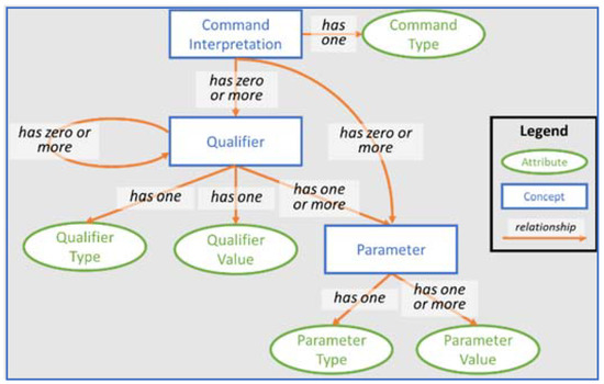 At the semantic level, MITRE’s ontology (SLUS) specifies a set of entities, attributes, and relationships that capture meaning at the command or clearance level. Figure 1 illustrates the ontology of SLUS in graph format. At the highest level, SLUS starts with a concept called Command Interpretation that represents an instruction, and it has a mandatory attribute called Command Type. The Command Type attribute declares the type of the instruction, such as an aircraft maneuver such as “climb” or a clearance to fly a procedure such as “cleared ILS two one approach”.