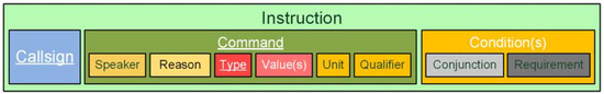 In comparison, Figure 3 illustrates the semantic level of the European ontology (SLEU). At its highest level, SLEU starts with a concept called Instruction, i.e., a mandatory Callsign, a mandatory Command, and optional Conditions. If the Callsign cannot be extracted from the transmission, the Callsign is “NO_CALLSIGN”. A Command concept always has a Type attribute that declares the type of instruction represented. When no Command is found in a transcript, a Command concept with Type “NO_CONCEPT” is created. Depending on the Type, no Value or one or more Values can follow. If a Value is available, the optional attributes Unit and Qualifier are possible. The optional Condition concept can be present for any Type and more than one may be associated with one Command.