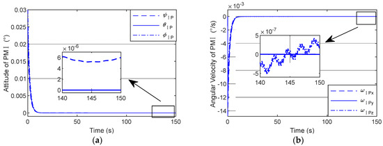 Attitude and angular velocity curve of PM I: (a) attitude curve and (b) angular velocity curve.