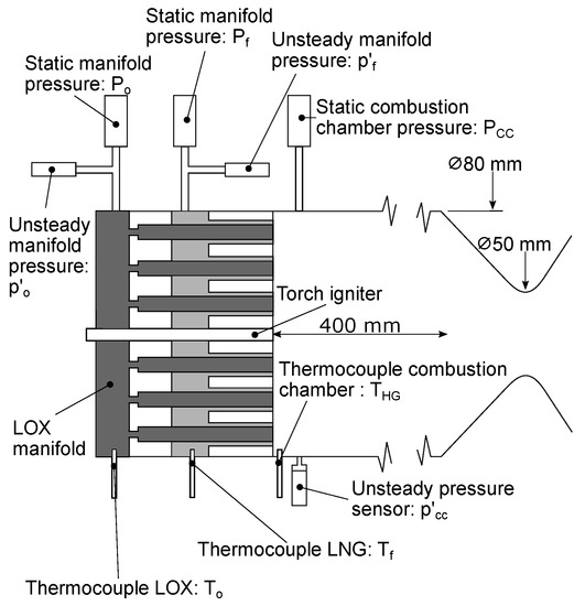 - Martin, J.; Armbruster, W.; Hardi, J.S.; Suslov, D.; Oschwald, M. Experimental Investigation of Self-Excited Combustion Instabilities in a LOX/LNG Rocket Combustor. J. Propuls. Power 2021, 37, 944–951. [Google Scholar] [CrossRef]