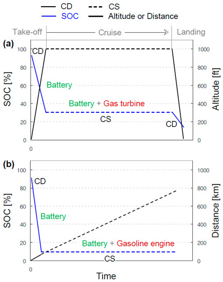 Similarity of the operational modes between (a) hybrid UAM and (b) PHEV.