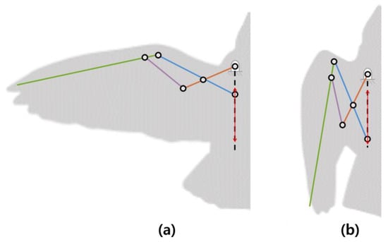 During the flapping flight, most flying animals fold their wings during the upstroke by flexing the elbow and adducting the wrist, as shown in Figure 2a (wing folding) []. By folding the wing, drag and inertial cost are reduced because the wing’s moment of inertia can be reduced while reducing the span [].