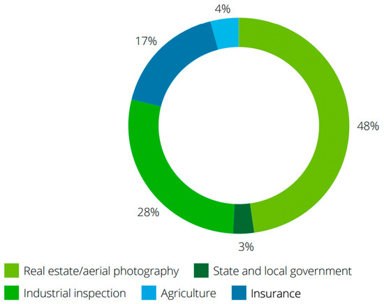 Figure 6 demonstrates the uses of commercial drones in the United States, with 17% of drones having been applied for commercial purposes in the insurance industry in 2018.