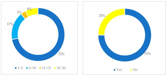 In total, 72% of participants have 1 to 5 years work experience in the UAV sector; 17% have 6 to 10 years; 8% have 16 to 20 years; and 3% of participants have 11 to 15 years working experience. Additionally, 27 participants (75%) also have a remote pilot licence RePL (Figure 10).