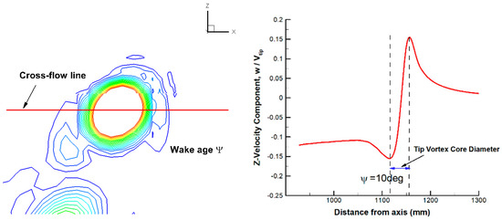 Probe line of blade tip vortex core and the definition of vortex core diameter [26].