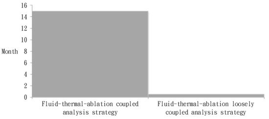 4.4. Comparison of Two-Way Fluid-Thermal-Ablation Coupled Analysis Strategy and Two-Way Fluid-Thermal-Ablation Loosely Coupled Analysis Strategy