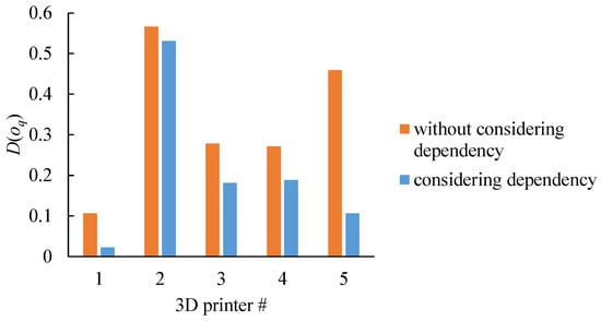 - The application results of four contrasting MCDM methods are reported in Table 14: FGM–fuzzy weighted average (FWA) [,,], the ordered weighted average (OWA) [,,], FGM–FTOPSIS [,,,,,], and FGM-fuzzy VIKOR [,,,]. Clearly, the same 3D printer, Stratasys Fortus 900mc, was chosen by all methods, showing the trustability of the experimental result using the proposed methodology. However, 3D printers ranked differently in various methods. Their unequal performances in deriving the absolute priorities accounted for such difference. Defining and comparing with practically feasible solutions also accounted for such differences. For example, the EOS M 400-4 was not as good as the HP Jet Fusion 5200 for speed, and the opposite was true for resolution. Therefore, the two 3D printers were compared to different reference points, whereas in existing methods, they were compared to the same reference point. This explains why their ranking results in the proposed methodology differ from those in existing methods.