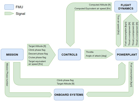 Signals exchanged between the FMUs of the aircraft dynamic model.