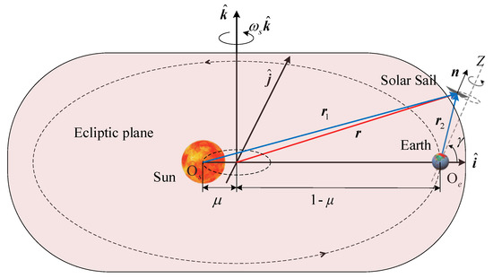 Schematic diagram of Sun–Earth solar sail CR3BP.