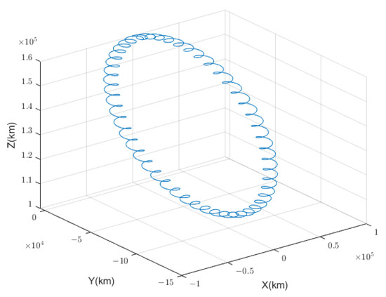 A schematic diagram of the polar displaced orbit of a solar sail in the Earth coordinate system is shown in Figure 2. This is a non-Keplerian orbit in the form of a spiral.